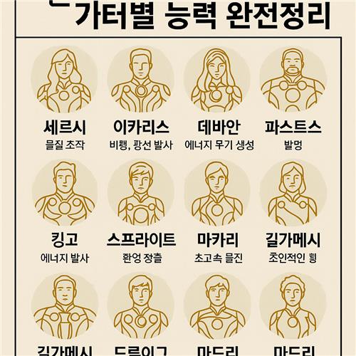 마블 시네마틱 유니버스의 세계를 더욱 넓혀준 이터널스! 수천 년을 살아온 그들의 신비로운 능력은 한 명 한 명 다르게 빛나고 있죠. 오늘은 각 이터널스 멤버들이 가진 고유의 힘과 특징을 캐릭터별로 완전히 정리해드릴게요. 어떤 캐릭터가 가장 마음에 드실지 생각하며 읽어보셔도 재미있을 거예요! 여러분의 최애 이터널스는 누구인가요? 댓글로도 함께 공유해 주세요!