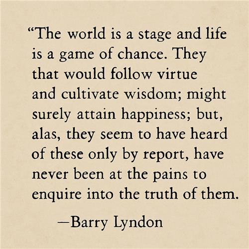 이처럼 배리 린든의 대사 하나하나에는 그의 운명, 시대의 분위기, 인간 본성에 대한 깊은 통찰이 담겨 있습니다. 단순한 감정 표현이 아닌, 삶과 죽음, 권력과 몰락에 대한 서사를 전하는 도구로써 대사가 활용되는 점이 정말 인상적이죠.