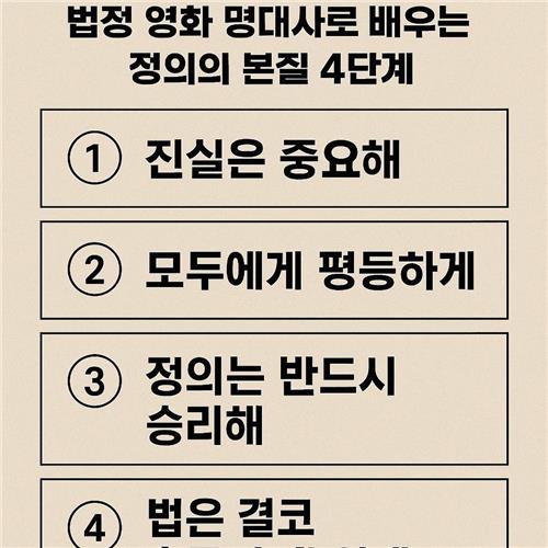 이번 글에서는 명작 법정 영화 속 명대사를 통해 '정의란 무엇인가'를 4단계로 나누어 깊이 있게 들여다보려 합니다.