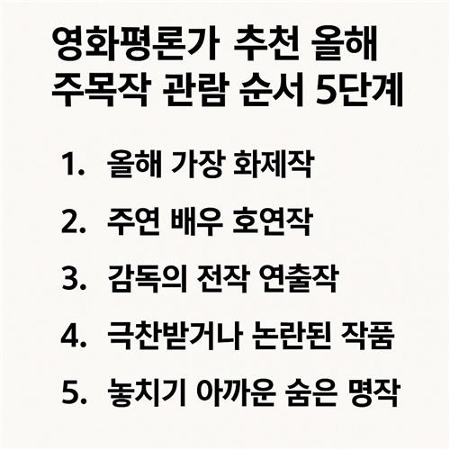 요즘 개봉작들 보셨나요? 매년 쏟아지는 수많은 영화들 사이에서 어떤 작품을 먼저 봐야 할지 고민되시죠? 그래서 오늘은 영화 평론가들이 꼽은 올해의 주목작들을 효과적으로 감상하는 5단계 관람 순서를 소개해드리려 해요.