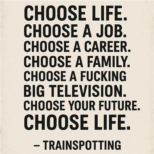 "Choose life. Choose a job. Choose a career. Choose a family…"