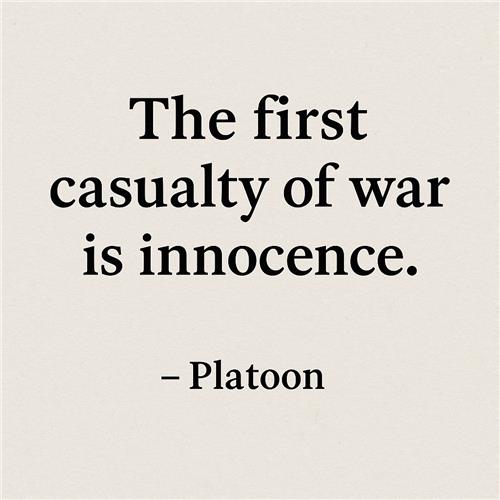 영화에 직접 등장하지는 않지만, 플래툰의 주제를 가장 잘 설명해주는 문장으로 자주 인용됩니다. 전쟁은 가장 먼저 인간의 순수성과 도덕성을 앗아간다는 점에서, 이 말은 플래툰의 메시지를 함축적으로 보여줍니다.