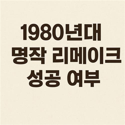 영화의 황금기라 불리는 1980년대, 수많은 명작들이 탄생했죠. 그 시절을 기억하는 분들에겐 추억이고, 요즘 세대에겐 신선한 레트로 감성으로 다가오는 그 작품들. 최근 몇 년간 이들 명작을 리메이크한 영화들이 속속 등장하고 있습니다. 하지만 과연 이 리메이크 작품들, 원작의 명성을 이어갈 수 있었을까요? 오늘은 1980년대 명작 리메이크 영화들의 성공 여부를 하나씩 들여다보며, 그 매력과 한계를 함께 살펴보려 합니다.